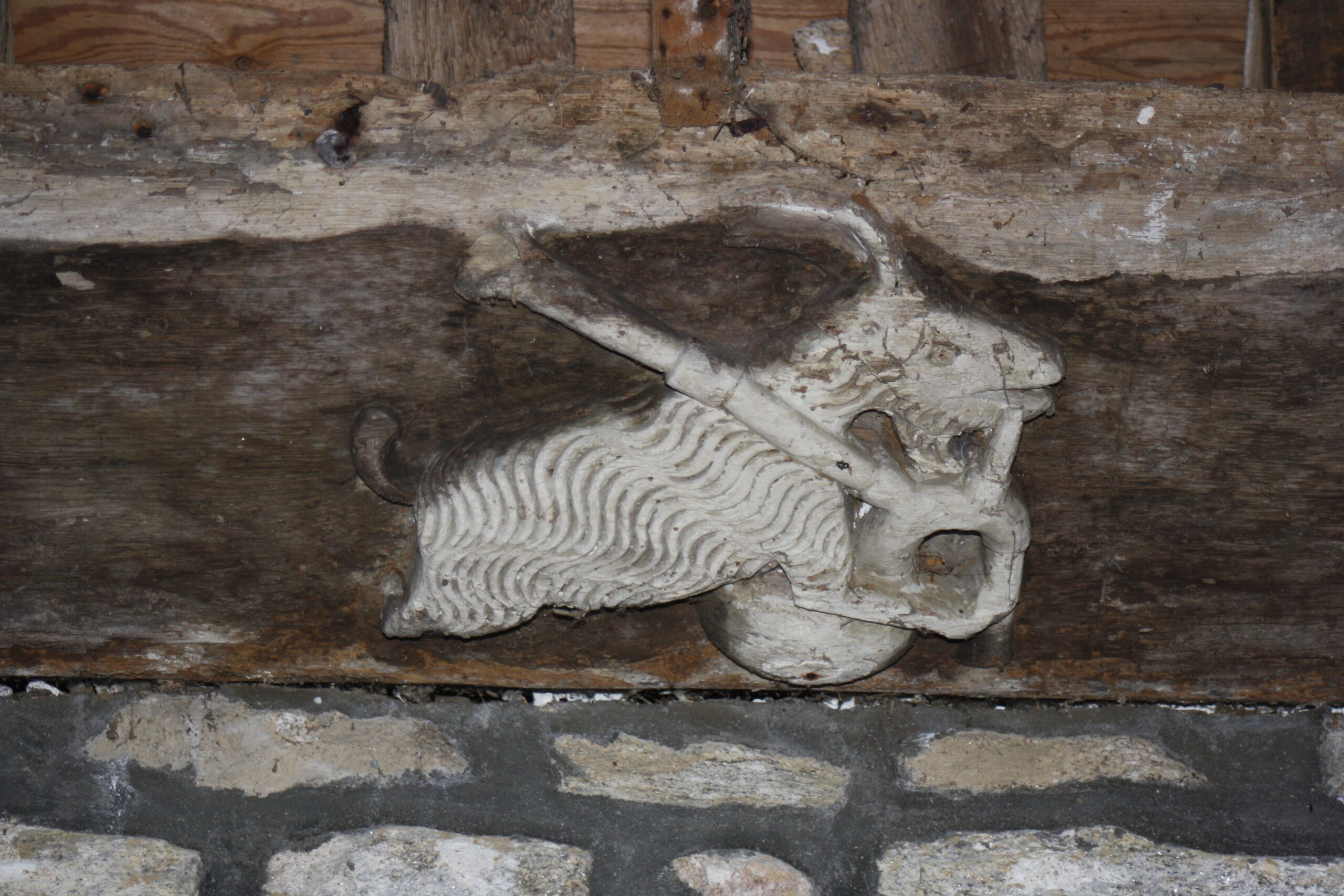 Les lambris de la charpente sont aujourd’hui manquants. La chapelle est connue pour ses sablières sculptées. Le style de ces macarons sculptés est un mélange de gothique (représentations de chien/serpent, de vache/dragon, de chèvre jouant du biniou…) et de classique italien avec des masques grotesque d’hommes et de femmes. Autrefois cette chapelle était placée sous le patronage du seigneur de Careil. Le seigneur de Careil était tenu d’y célébrer deux messes par semaine. En échange, il bénéficiait de douze œillets de marais, de planches de terres plantées en vigne et d’une maison et jardin situés à Guérande.